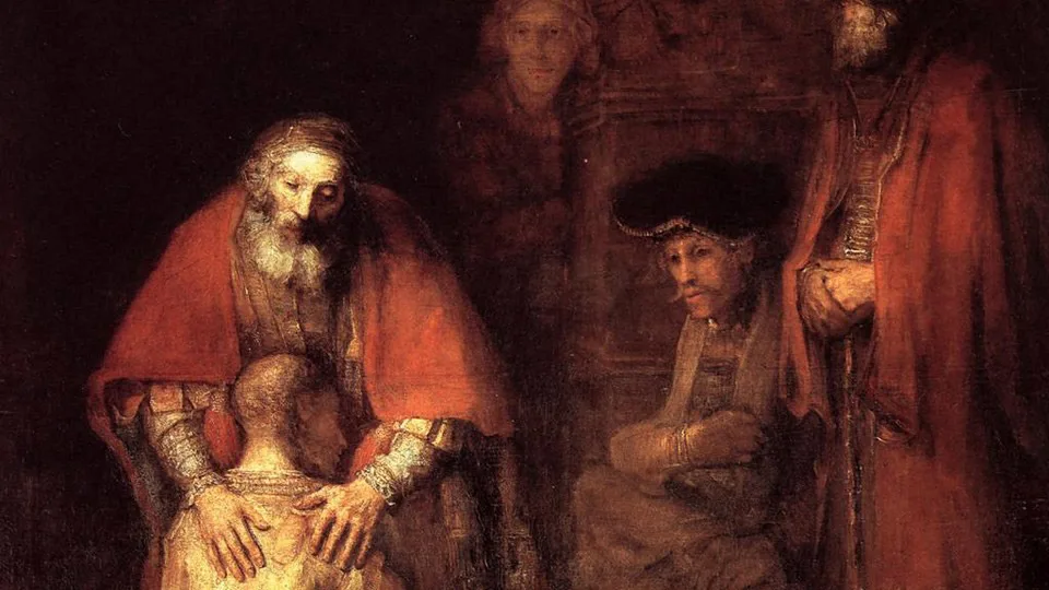 Le père se justifie : « Il est mon fils, je l’avais perdu et il est revenu, je le croyais mort et il est vivant. Donc il faut se réjouir, faire un banquet. N’oublie pas : c’est ton frère, viens l’embrasser. Comprends donc que l’essentiel, ce n’est pas l’obéissance plus ou moins parfaite, l’acquisition des mérites et des vertus ». On ne peut pas rejeter celui qui a failli. Dieu est Père : les hommes sont ses enfants. Un seul manque : il est triste. Un seul revient, il est fou de joie. »